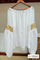 Dantela brodată cu mărgele aurii adaugă un accent nobil, în care fiecare detaliu reflectă lumina și transformă simplitatea într-o operă de artă. Este o creație care îmbină finețea materialului natural cu măiestria lucrului de mână, evocând farmecul femeilor de altădată.