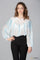 La gât are creț lucrat manual, acesta îi dă lejeritate și face ia purtabilă atât strânsă la gât, cât și decoltată. Tivul este lucrat de mână prin tehnica ”găurelelor”.